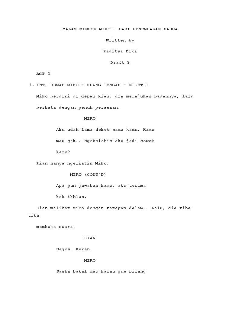 Malam Minggu Miko Hari Penembakan Sasha Pdf from imgv2-2-f.scribdassets.com Maybe you would like to learn more about one of these? Check spelling or type a new query. Skenario malam minggu miko penembakan sasha. We did not find results for: